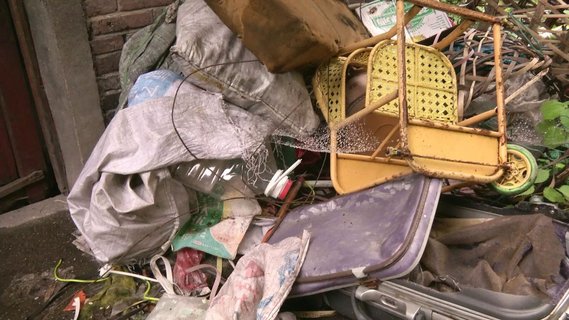 △汪水莲带孩子租住的房子门口还堆着她们捡的垃圾    图/倪玮