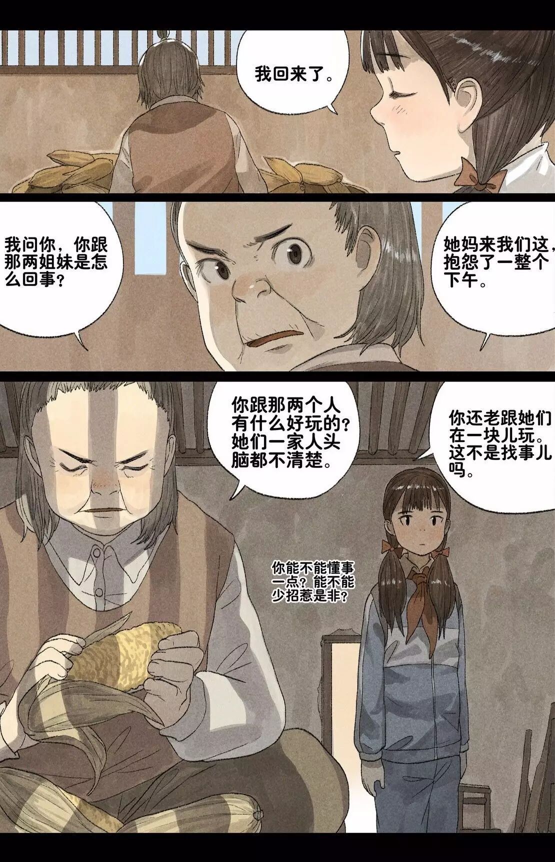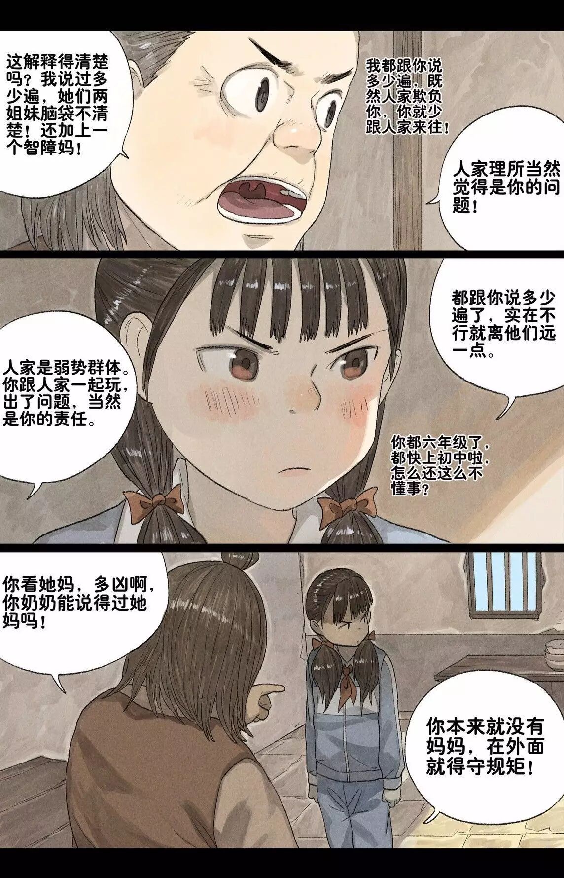 于是前因后果在丽丽的脑海里连成了线。她终于知道为什么爷爷奶奶一直对自己打骂,明白了爸爸为什么似乎更疼两个妹妹。原来自己不是亲生的。丽丽不爱说话,可她不瞎也不聋,甚至更敏感。她也终于从邻居的闲谈里知道了自己的身世。她是妈妈怀着孕嫁过来的啊。
