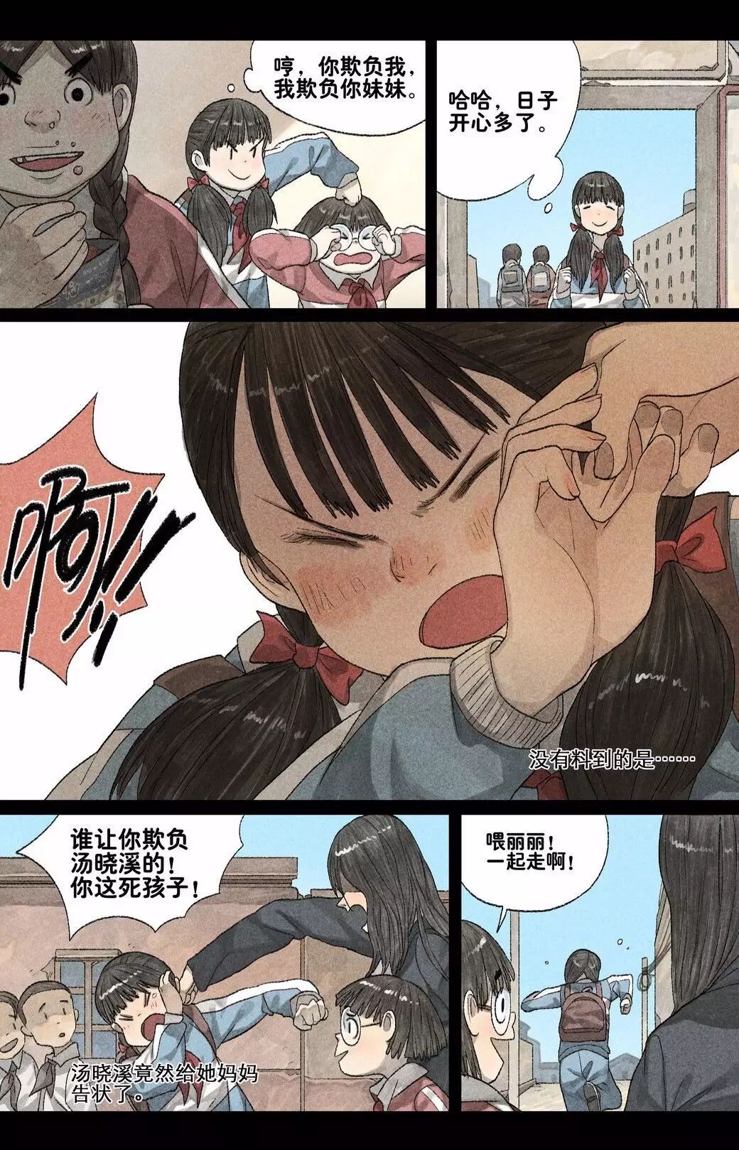 丽丽第一次见到她们的妈妈是在学校。那一天刚放学,一个女人等在教室外,她瘦瘦矮矮的,又黑,不好看。就是这个丑女人,突然上前来,一把揪住了丽丽的耳朵。她劲儿可真大,丽丽的眼泪马上不受控制地冲到了眼眶,但她拼命忍住了,不想丢脸。那个女人旁边,是好像有点得意的汤晓溪。