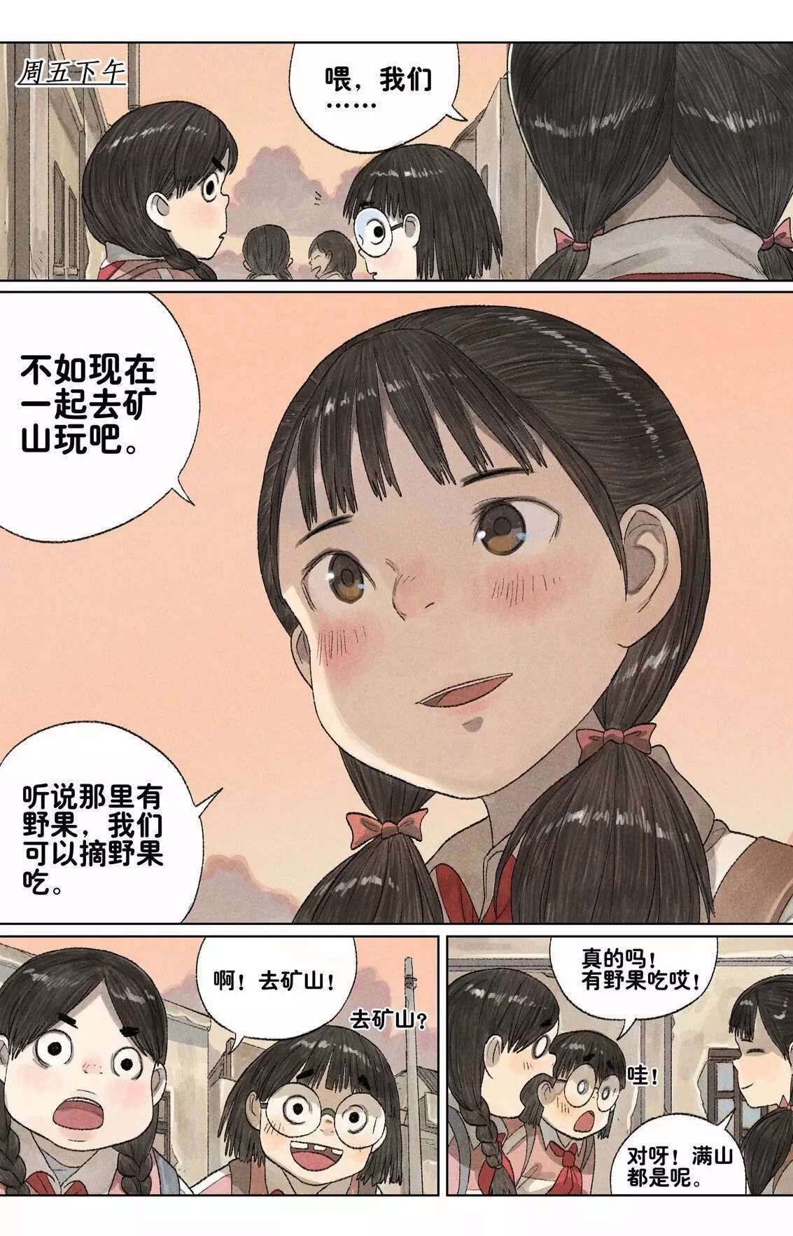 “去矿山上玩吧,听说那里有野果子,可以摘着吃的。”丽丽提议。得到了小姐妹的赞同,反正一说到吃的,这两个人总是很起劲,永远是没吃饱的样子。丽丽说的矿山就在学校门口一条街的后面,一拐就是。山上经常有人开着大车,发出震耳欲聋的声音,不知在挖些什么。山的前面一个几十米高的土坡,开阔且无人,丽丽她们常去玩耍。不只她们,那一块是不少小学生放学后玩耍的天然乐园。