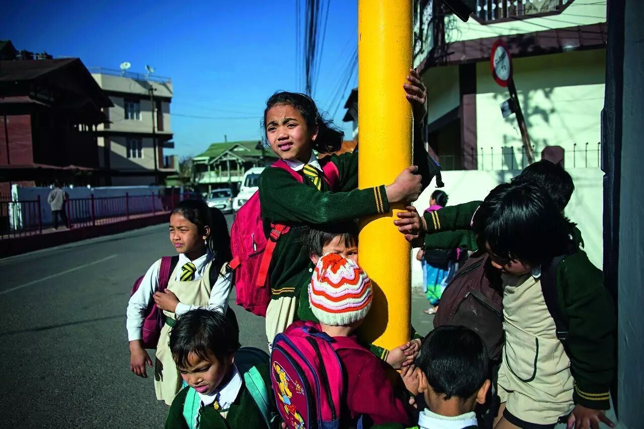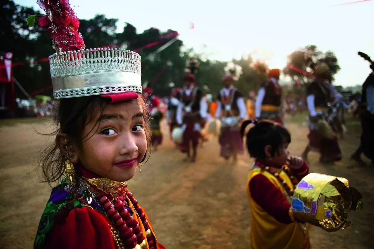 卡西族的孩子们正在庆祝部落的节日。相比女孩们的一脸自信,男孩们看上去略显一丝「苦大仇深」。