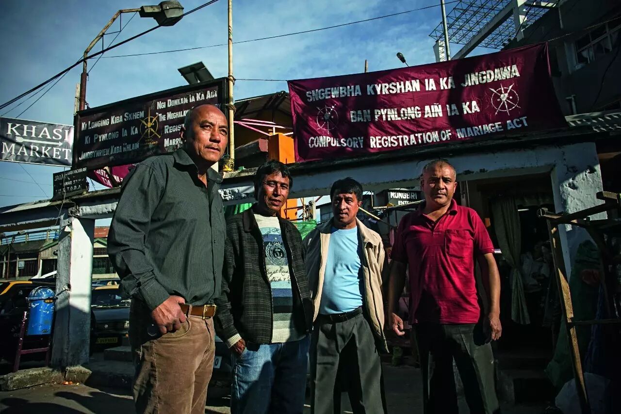 印度梅加拉亚邦西隆市,呼吁「男女平等」的男权积极分子们。