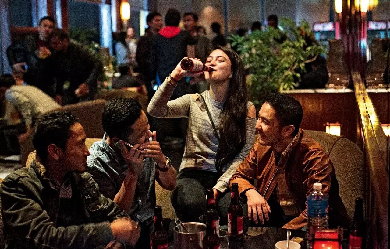 印度梅加拉亚邦西隆市,一群男女在酒吧流连,这里的女人们可以在酒吧中畅饮。