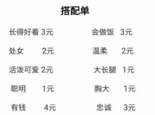 就像这个《如果有五块钱怎么选择老婆》的测试题一样,有的男人非锥子脸不娶,有的男人必挑公务员或教师,有的男人看重老婆家庭资产,有的男人要求女人性格柔顺,有些痴迷于大胸大长腿——