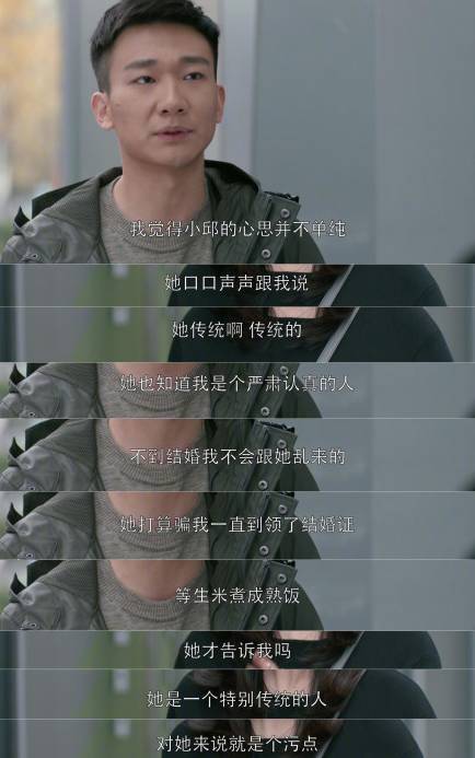 在陷在自己处女情结里的同时, 他质疑邱莹莹是故意隐瞒自己非处女的事实,并直接给她扣上了「心思不单纯」的帽子。