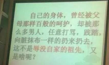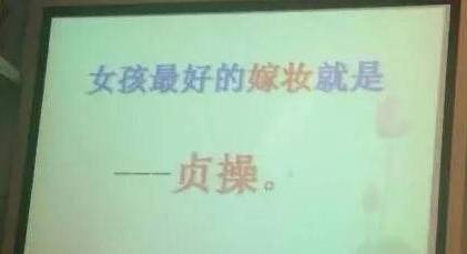 比如某高校课堂上老师公开放出的屁屁踢——女孩最好的嫁妆是贞操