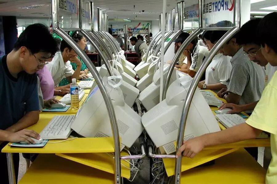 2000年位于北京东大桥的百脑汇电脑城内,一大早就有许多考生和家长来到电脑城排队等待免费上网查分。图片源于网络