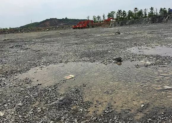 6月的德清,阳光猛烈,空荡荡的园区中停留了7辆挖掘机。除了一个爆破之后留下的大坑外,现场看不到其他施工的痕迹。