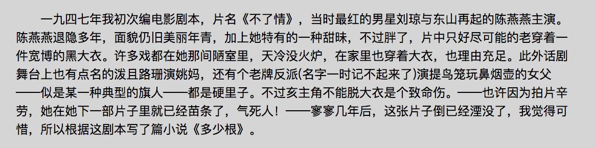 不过,这部电影里的陈燕燕真的胖出了天际(后来我才知道,当时她刚刚产后复出),连“钦点”陈燕燕的张爱玲后来在《多少恨》的前言还不忘补刀:
