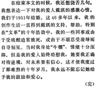 这是他为她做的最后一件事。在他的回忆录里,我读了好几遍,关于张爱玲,只有那么一两句话,像说一个陌生人。而对于妻子戴琪,在文章结尾,他郑重地感谢: