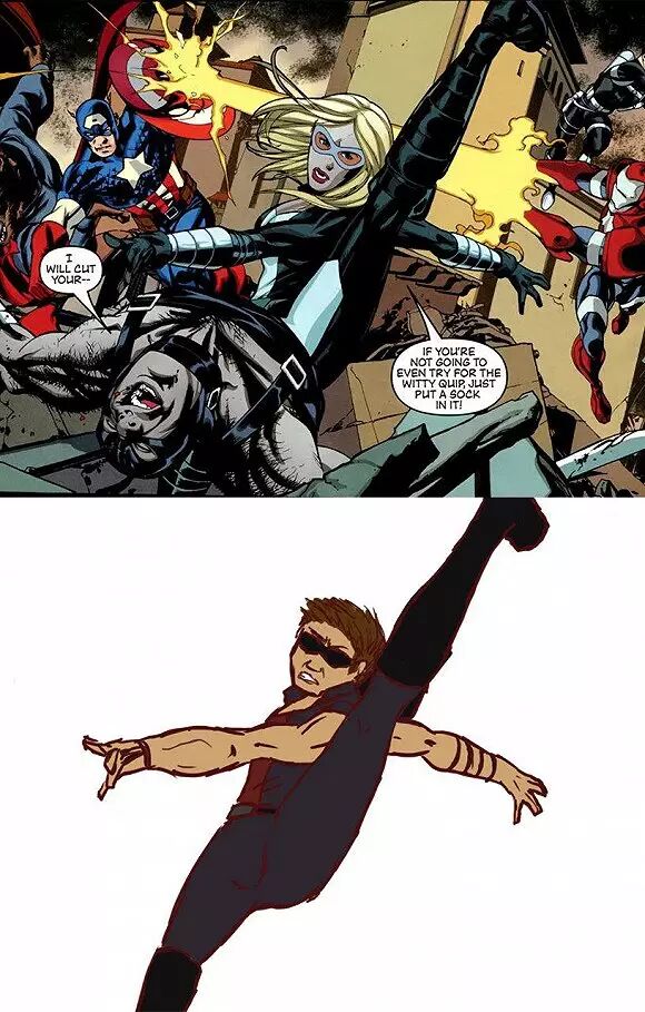2012年,网友们发起了“鹰眼行动”,用漫威的男性英雄角色“鹰眼”来代替漫画女性凸显其身体是否扭曲。他们选取漫画的封面或者内页中的女性,再自己手绘同样姿势的鹰眼,并将原图放在一旁一同上传。如果鹰眼做出原图的身体姿势而不显得奇怪或可笑,那么就可以说这个姿势没有被色情化或客体化,不过数千份作品当中,没有多少看起来正常的。这些戏仿事实上消解了女性身体在漫画中的性化(sexualization)。她们把对女性身体不公正的呈现同形式地转移到男性上,令女性形象在流行文化中的扭曲变得非常直观。