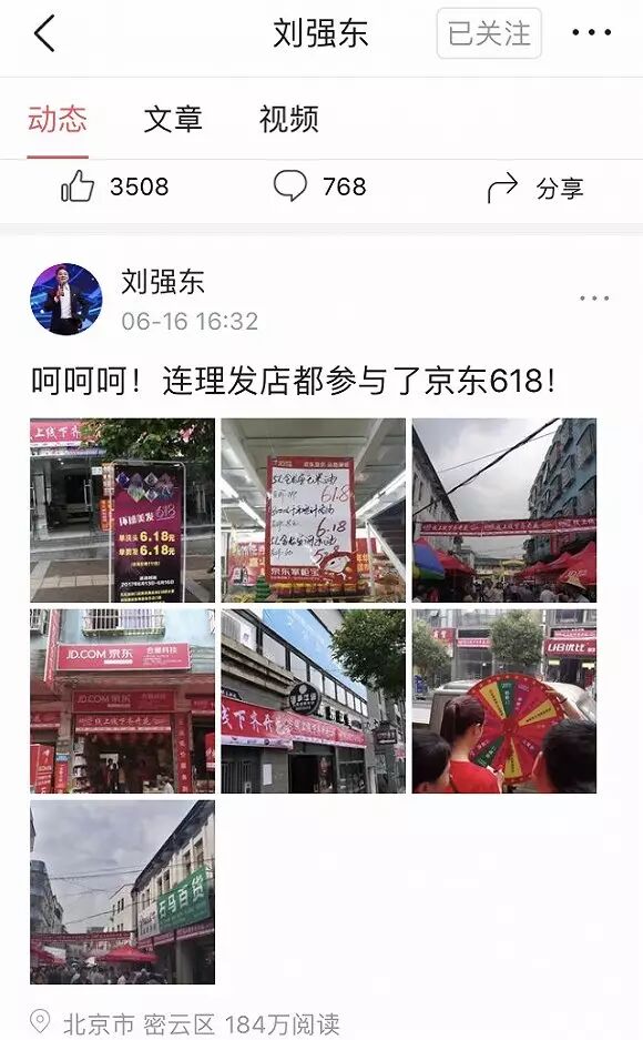 6月16日,刘强东发了一条动态“连理发店都参与了京东618!”