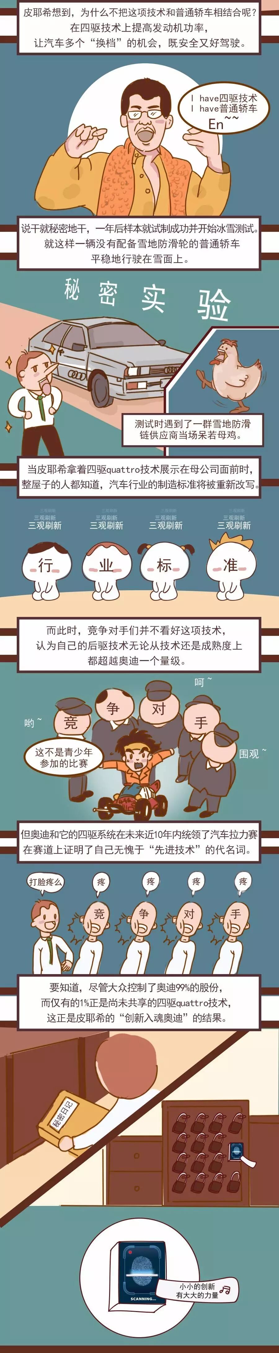 “霍希时代”,奥迪创新的宗旨是“不创新就会死”,为了高品质高性能的车,宁可不要公司,也决不妥协。
