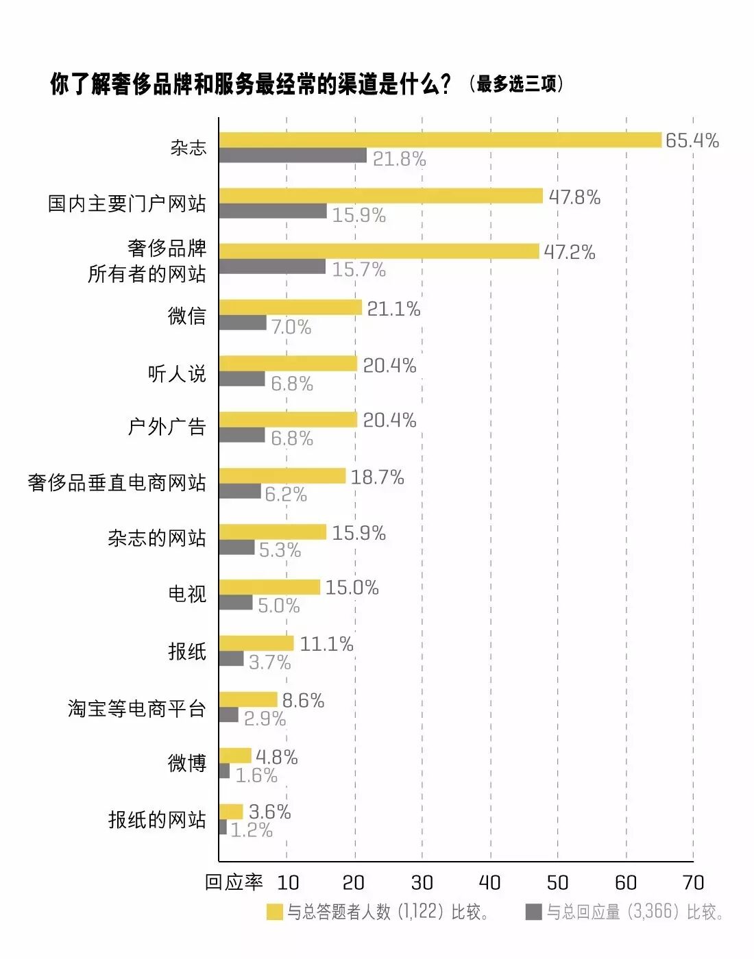 对于各奢侈品品牌决胜市场的最大“矛盾”,便在于既要保持产品的“稀缺”,又要保证信息的足够“普及”。如今,仅仅保持产品稀有性早已不足以笼住忠实的客户群体,在互联网与大数据的协同动力下,人们大多不会拒绝去尝试另外一种新的可能性。有调查发现,中国消费者对于奢侈品品牌的忠诚度远远低于西方消费者。基于这样一个时代,各奢侈品品牌开始着手大力加强其信息普及度,利用数字化营销手段更广泛地传播产品工艺及品牌文化。虽然在最近一年里,奢侈品消费者们了解奢侈品牌及服务最经常的渠道魁首依然是杂志(65.4%),但是还有一个在今年表现不俗的角色——数字化平台。