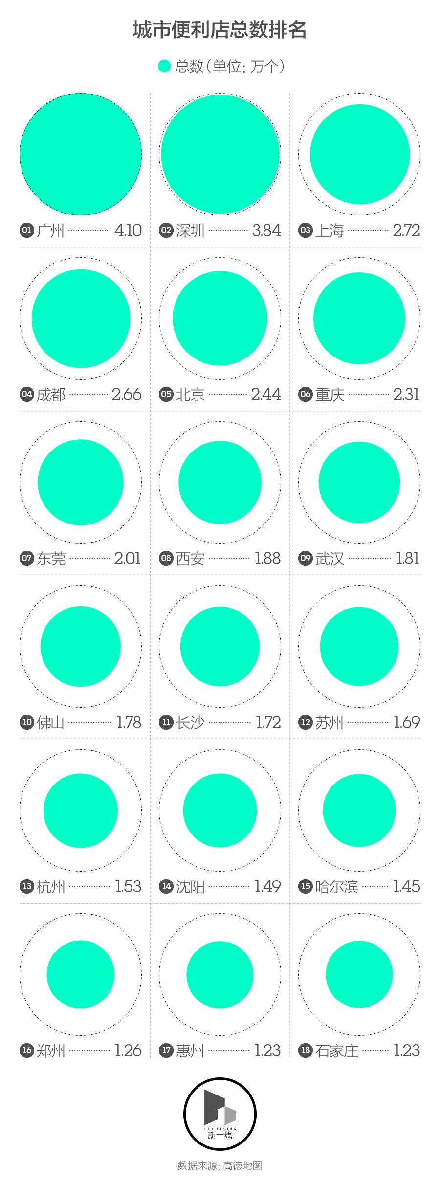 城市便利店总数的多少,是衡量城市便利程度最基础和直观的数据。