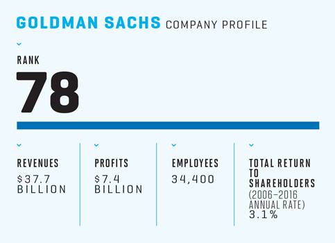 曾经高盛是华尔街最大的全功能投资银行,但经历过毁灭了贝尔斯登和雷曼兄弟的金融危机之后,如今高盛却变成了规模最小的一家。其资产负债表中的资产(并非管理的资产)规模约9,500亿美元。美国银行收购了美林;摩根大通收购了奄奄一息的贝尔斯登,最终将其彻底吞并;富国银行收购了美联银行,这三家公司的资产规模是高盛的近三倍。高盛的主要竞争对手摩根·士丹利因为从花旗集团收购了美邦,以及大力发展经纪业务,员工人数达到了100,000人。而高盛并没有经纪业务,员工仅有约35,000人。
