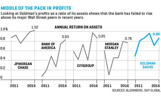 于是,148年之后,高盛开始以自己的方式,提供过去大部分时间都在回避的贷款业务。“我们有机会建立利润更高的贷款业务,因为我们的竞争对手,并不是那些在账簿里已经持有了2万亿美元贷款的传统银行,”他说道。“如果我们有业内最好的贷款业务,并能递增到1,000亿美元的规模,这将给我们目前所做的事情带来增值效应。但我们不需要这样做,因为没有人认为这是我们的核心业务。”