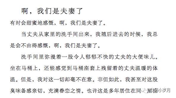 这句话实在太混蛋了,当然,要是被阳子听见,肯定会告诉自以为是的李敖老师:一份幸福的婚姻的开端,是坐在丈夫刚刚大过便的马桶上: