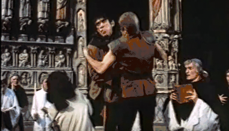 当爱丝美拉达即将被绞死,这个平时看着像白痴的“怪物”瞬间男友力max,二话不说从阁楼冲下来,当着众人的面抱走了爱丝美拉达,高呼“圣堂庇护”;