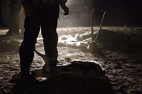 五十一上午说过,杀羊剥皮是他拿手好戏,这才被孔吾海介绍过来,此时的身手也验证了他自己的说法。他把羊头和四个蹄子割掉不要,只要藏羚羊皮,场面血腥。