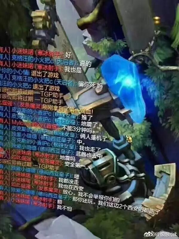 在“英雄联盟”里,如果打到一半就中途逃跑,往往会受到游戏玩家的举报。但在当时,她们的对手得知是地震,主动说:“地震吗,安全第一。放心,我不会举报你们的。”