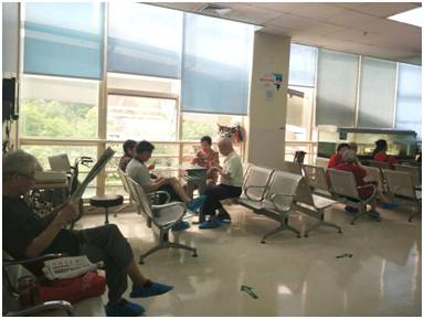 透析过程中除规定时间外,家属不能随意进出病房。他们大多坐在等候区的椅子上聊天、打牌。