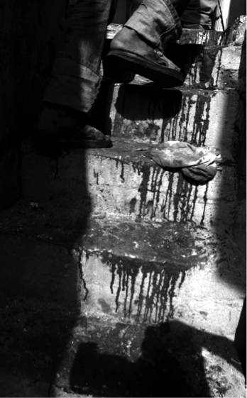 踏着鲜血走下楼梯。太阳正烈,水泥地映出白花花的光,血迹因此显得老旧,好像已经干了几百年。