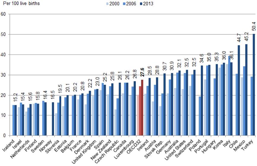 根据经济合作发展组织(OECD)2013年数据,比利时的剖宫产率为20.2%,在OECD各国中属于偏低水平,也与世界卫生组织建议的合理剖宫产率上限比较接近。
