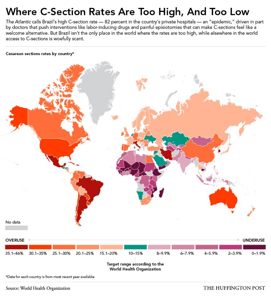 根据世界卫生组织(WHO)2015年的声明,一个国家理想的剖宫产率应当在10%-15%。过低的剖宫产率可能与更高的产妇和新生儿死亡率相关,而超过这一比率的剖宫产不但无法改善产妇和新生儿的存活状况,反而可能增加分娩过程的危险和不确定性。