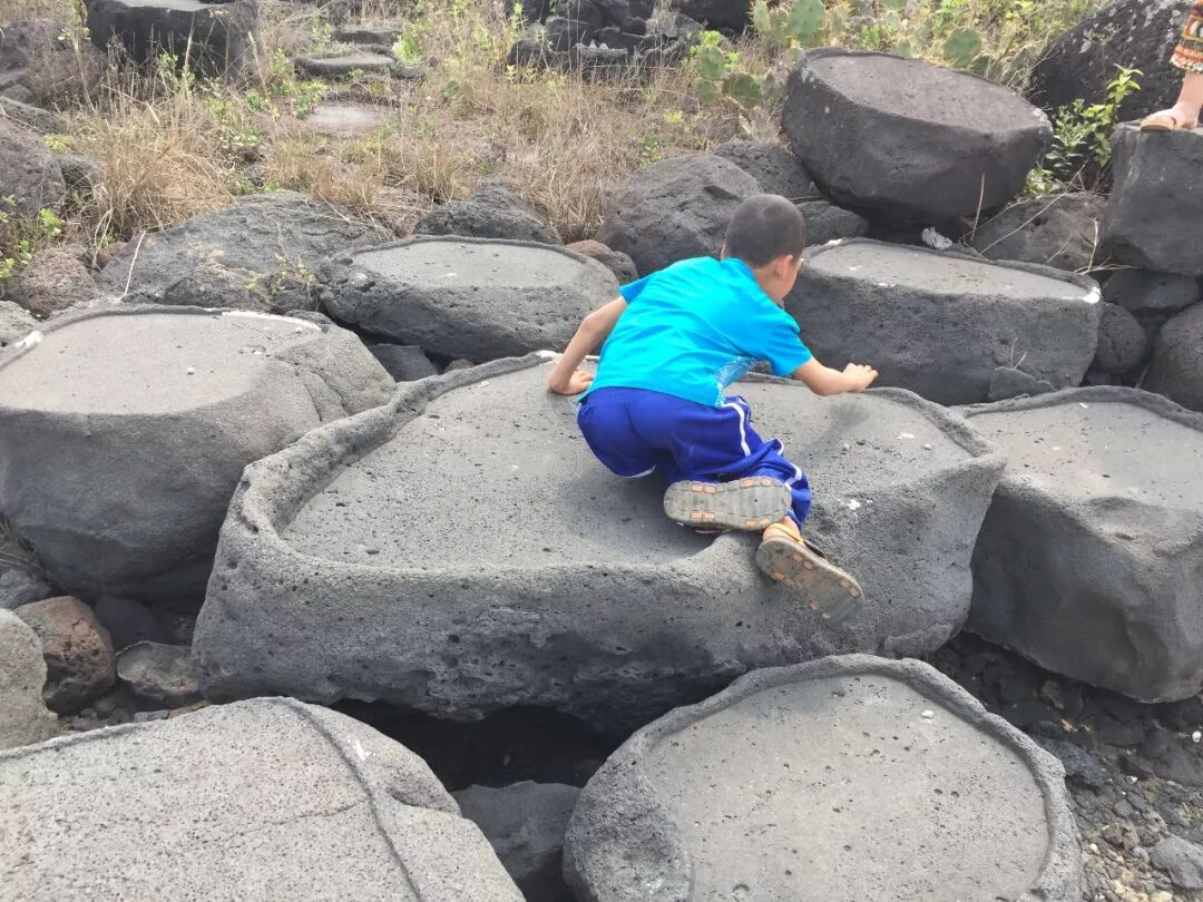 绵延千年的盐场,袒露在村子的入口,一口口滤井中残留着卤水,等待潮水涌入。盐场周边堆叠的火山石,被祖先开凿成了顶上平整的石床,用来晒盐,像是高低陈列的镜面。李氏祖宗的坟冢俯视整座盐场,坟前石头上遍洒白灰,显示此处的郑重。几年前,盐场熙熙攘攘,烈日下忙碌的人群中,也有李有笔和妻子的身影。
