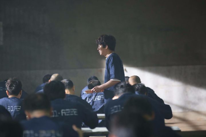 不一会儿,有个犯人“站”了起来:他只是佝偻着腰,不敢直立,表情有些惶恐,手里拿着盛菜的大铁盆,没有说话,也没有走动。犯人旁边的板凳上,坐了一个狱警,但他没有搭理。