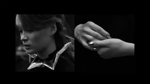 这是最终一个成品的照片。为了去呼应这种镜面不锈钢刀刃的感觉,我们在指甲的部分也做了相应的设计。