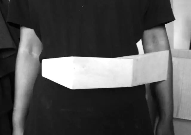 所以我就想这些硬质的几何和雕塑体,是不是也能够放到时装里面去?当时做了一些小小的实验,也请教了雕塑专业的朋友,尝试从泥塑开始去构筑一些形态。这个是我在朋友的工作室里面做的第一个模型。