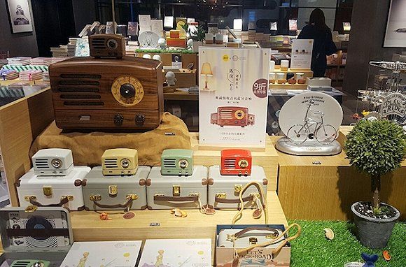 结合不同门店的具体情况,猫王的陈列展示方式有所不同。位于杭州嘉里中心的声音小镇是一家体验式音响实体店,有着大面积的CD和黑胶展示区,为了营造有关声音的美好环境,猫王和流金岁月之类有风格的收音机被摆放在一个专区。在达宝恩西安国美店,猫王的单独展示区装修成了一家书房的样式。在深圳文艺青年聚集的“旧天堂书店”里,猫王小王子系列则和已不多见的经典卡带陈列在一起。