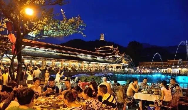 晚饭时,我们到了都江堰河边。河边的餐馆仍是那么热闹,挤满了来自成都的游客。大家坐在江边,看着清澈的江水,吹着凉爽的江风,什么都不吃都觉得满足。