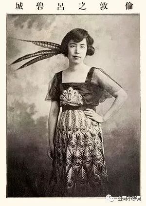 我前几天所写的女作家苏雪林,是吕碧城的脑残粉。她“曾从某杂志剪下她一幅玉照,着黑色薄纱的舞衫,胸前及腰以下绣孔雀翎,头上插翠羽数枝,美艳有如仙子。”这张照片,苏雪林曾供养多年,贴身收藏。
