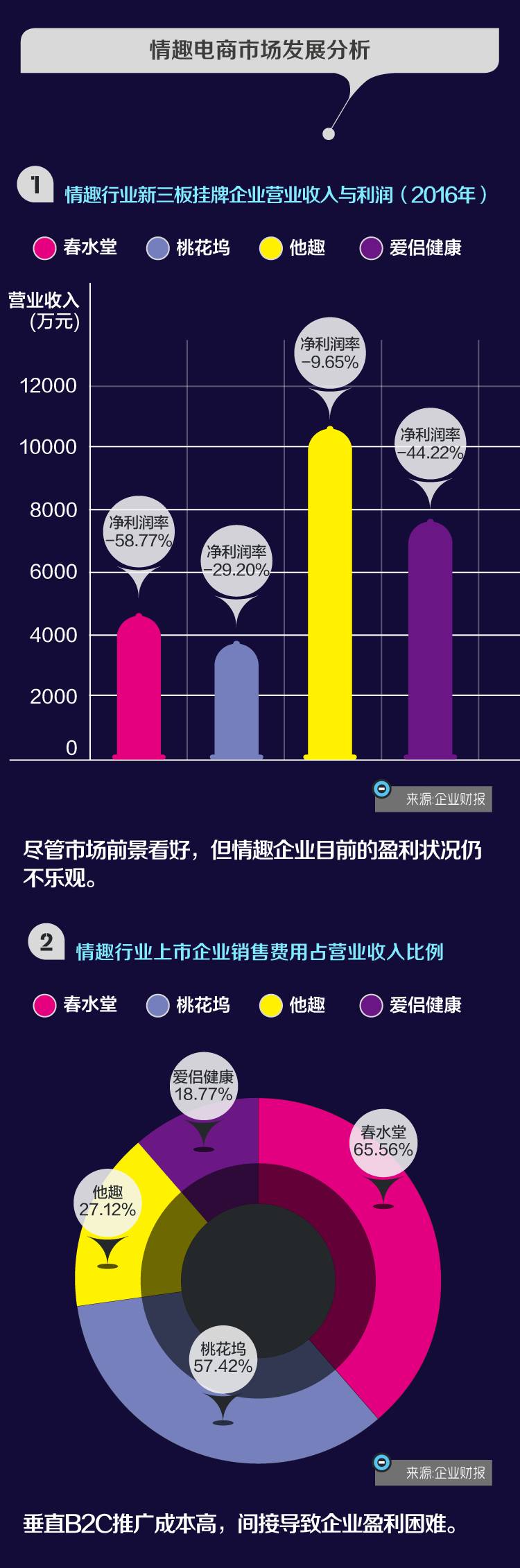 一个尴尬的现实是,中国成人用品电商仍处于灰色边缘。由于产品的特殊性,不能进行光明正大的广告推广,行业内也缺乏配套的市场标准和市场规范,打擦边球又容易走火。这意味着这些电商平台必然面临发展的天花板。从新三板的四家情趣产业公司的财报来看,2016年度均在亏损状态。当年备受追捧的马佳佳,如今和她的泡否一起淡出了公众视线。