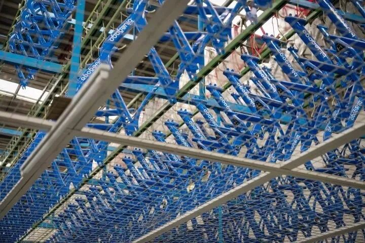 ▲天津某自行车厂商内的小蓝单车生产线。@视觉中国