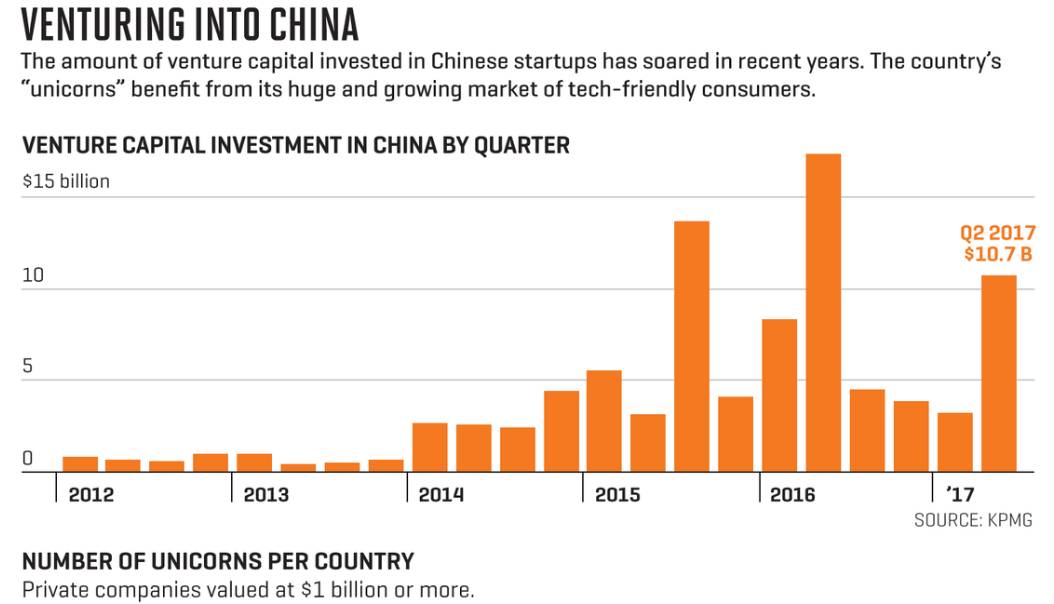 图中为中国的风险投资和独角兽公司数量 | 图片:Nic Rapp