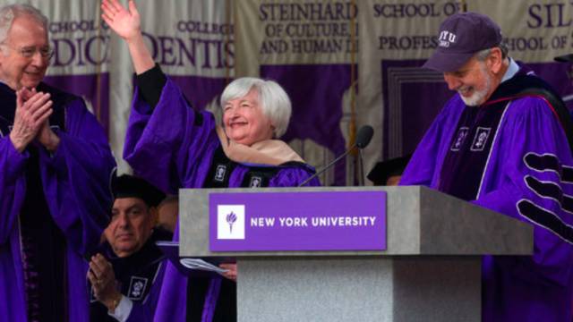 2014年5月,耶伦受邀在纽约大学毕业典礼上发言。纽约大学校长评价她为,全球最有影响力的央行行长、高等院校中受到普遍尊敬的一位教职人员以及富有开创性的女性榜样