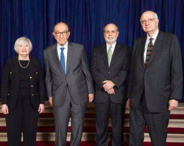 在非盈利组织International House组织的一场公开论坛上,四人美联储主席沃克尔、格林斯潘、伯南克、耶伦历史性聚齐。而耶伦是其中唯一未获连任的联储主席