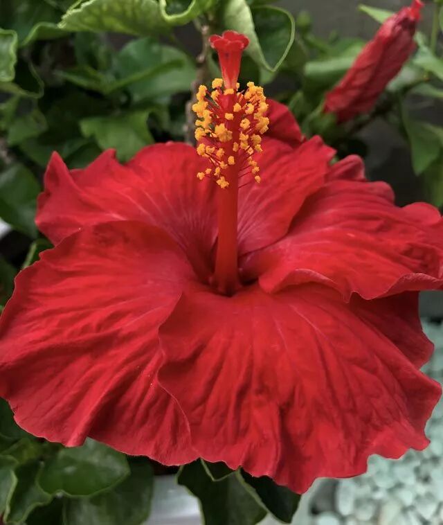 上周种下一株扶桑——就是朱槿、大红花。在乡下,人们以扶桑花做篱笆。一整面篱笆的灿烂红花迎风摇曳是乡村的一枚胸章。