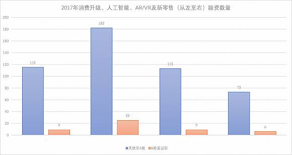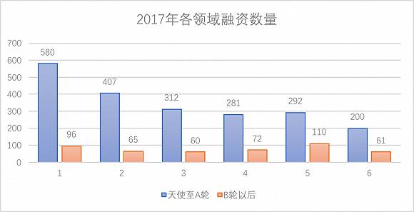 早期获投的项目中,这三个领域今年都有100例以上的融资,人工智能领域甚至达到了182例。这对于略显清淡的2017年创投圈来说,是个还算不错的战绩。