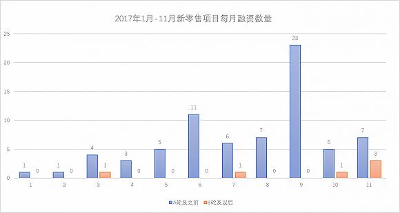 仅9月一个月,共有23个项目拿到了下一轮,数量多于整个2017年上半年新零售领域拿到融资的项目总和。这其中包括光速中国以及美团点评投资天使轮的猩便利;执一资本领投、经纬中国跟投的七只考拉;天使湾创投领投,多牛资本、汇光资本跟投的蚂蚁鲜生;GGV纪源资本、云启资本、蓝湖资本、真格基金共同投资的魔盒CITYBOX等。