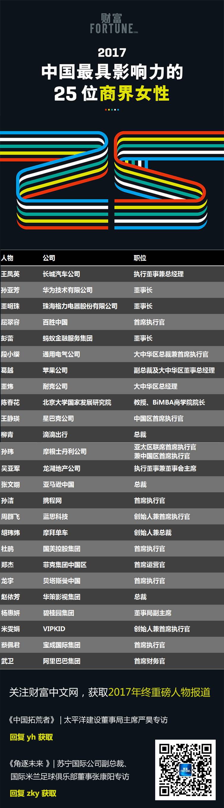 在这25 个名字中,有的正在汽车行业重构中国公司的国际版图,有的正执掌着生意立足中国大陆的《财富》美国500 强公司……她们正在以各自最擅长的方式,为商界书写未来。