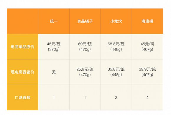 从45元/碗(370克)的价格的电商售价来看,统一对这款新品的定位应该是高端产品。这个定价要比在电商平台上销售的其它同品类产品高出许多。