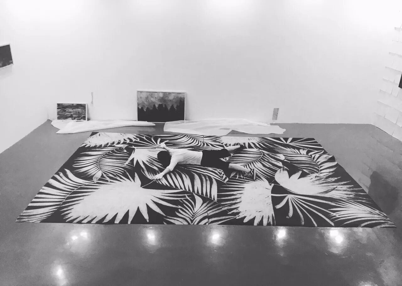 郭盈光的作品在国内展出,两张褶皱交叉的纸,象征着两个被安排、被挑选的人。