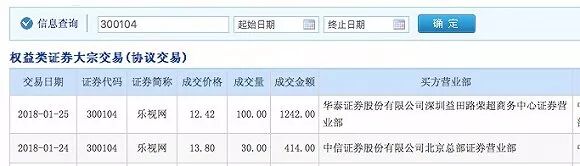 根据1月25日龙虎榜,乐视网一字跌停的第二天,仍有资金通过大宗交易买入乐视网。其中,华泰证券深圳益田路荣超商务中心有投资者以12.42元/股的跌停价成交了100万股,成交成交金额高达1242万元,占当日成交金额的55.52%。