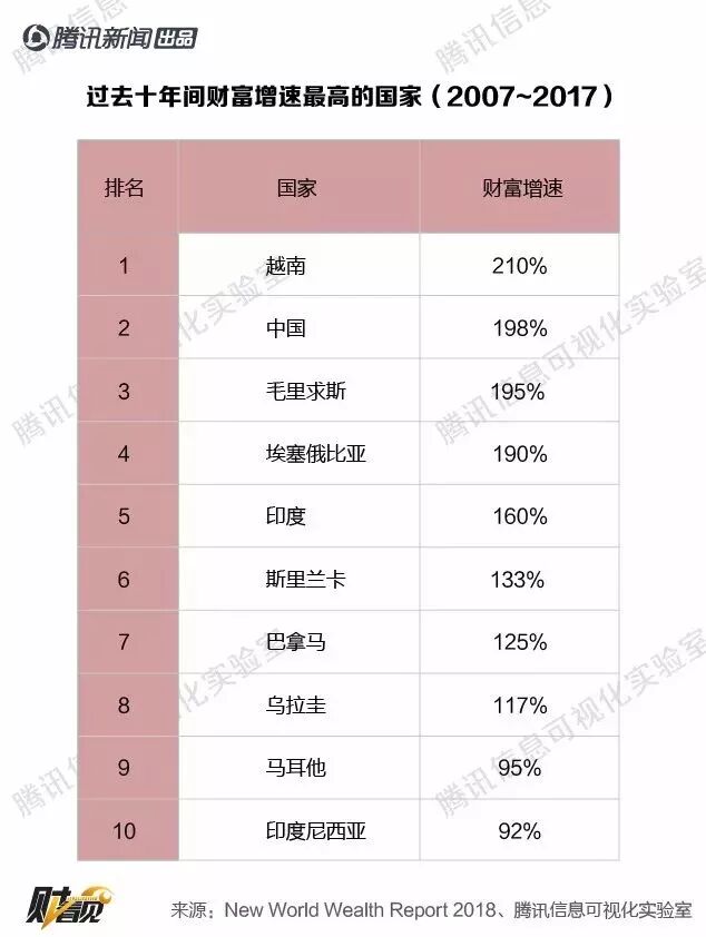 在过去的十年(2007年至2017年)内,印度财富总额从2007年的3.165万亿美元增至2017年的8.23万亿美元,增幅高达160%。