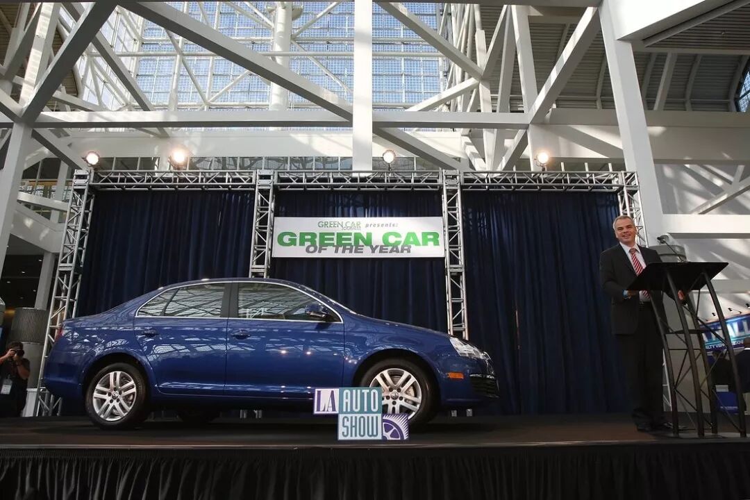 2008年11月20日,洛杉矶会议中心,洛杉矶车展媒体预览日期间大众汽车集团美国公司前总裁兼首席执行官斯特凡·雅各布接受了大众捷达TDI荣获的年度绿色汽车奖。David McNew—Getty Images